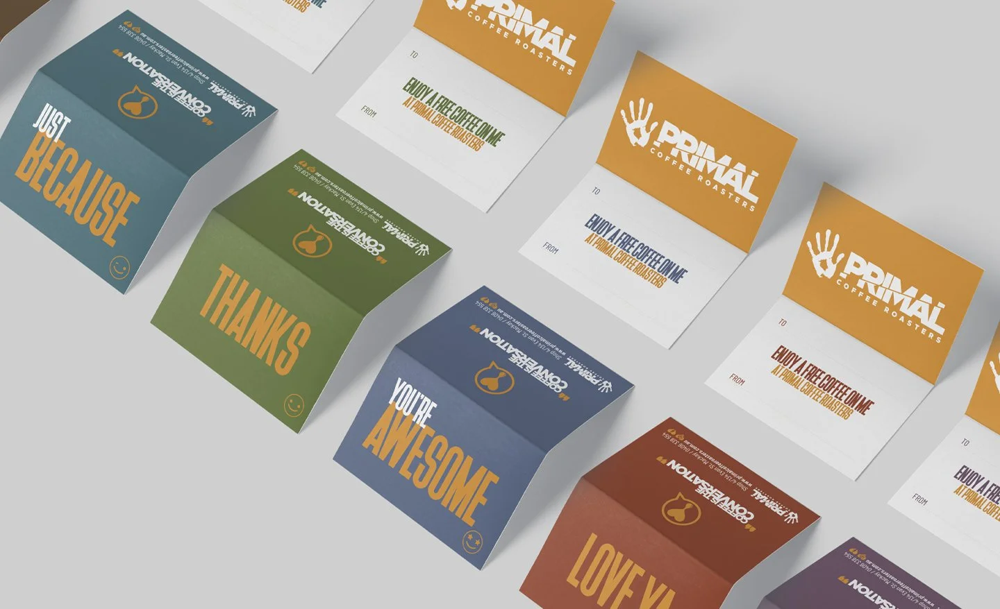 Primal came to redhotblue with an existing brand name and logo, which we used as a foundation for our work. As a family-owned, grassroots business, they wanted their brand to feel personal and hands-on. The team at Primal lives and breathes their craft, and their vision was to showcase the origins, stories, and craftsmanship poured into every blend, driven by their core belief that “coffee is the conversation.” They weren’t looking for something overly sleek or corporate, like the bigger franchises. Instead, they wanted a brand that embraces individuality and celebrates the uniqueness of their blends with a warm and down-to-earth feel.